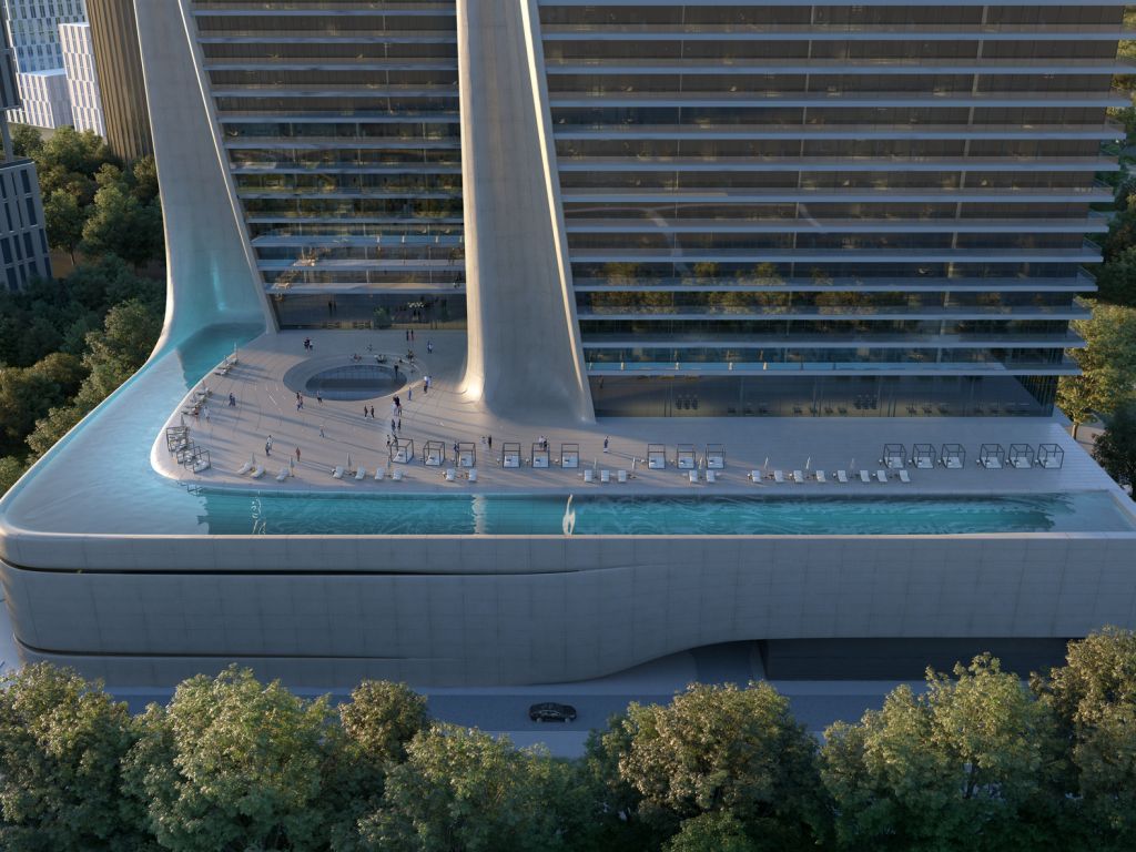 Башни объединены четырьмя подземными уровнями с парковкой. Роскошные удобства занимают граунд этаж и три общих подиумных уровня. Резиденции расположены в жилой башне Tower 1 с 4 по 51 этаж. Люксовые номера отеля премиум-класса расположены в башне Tower 2 с 4 по 51 этаж.