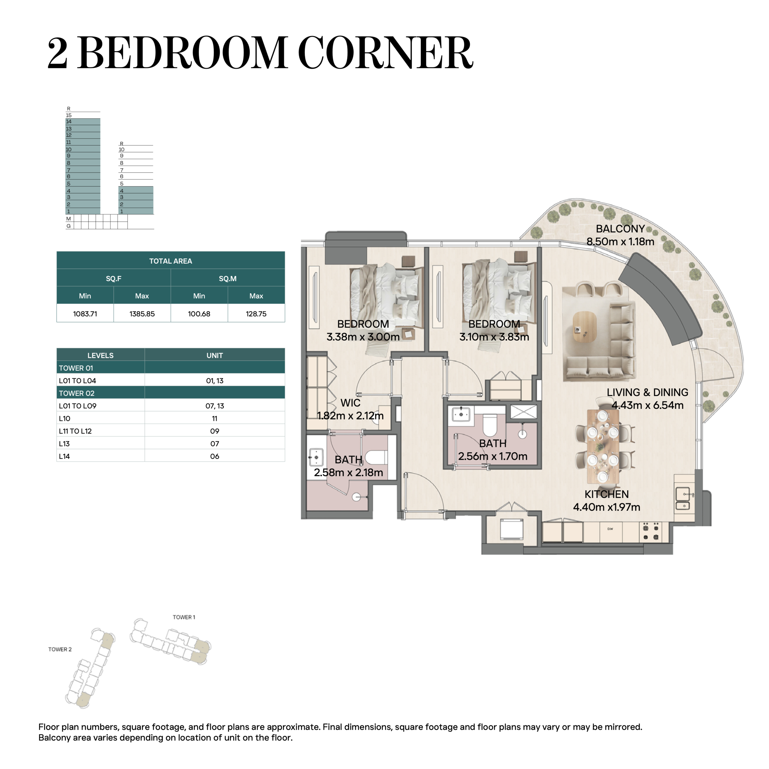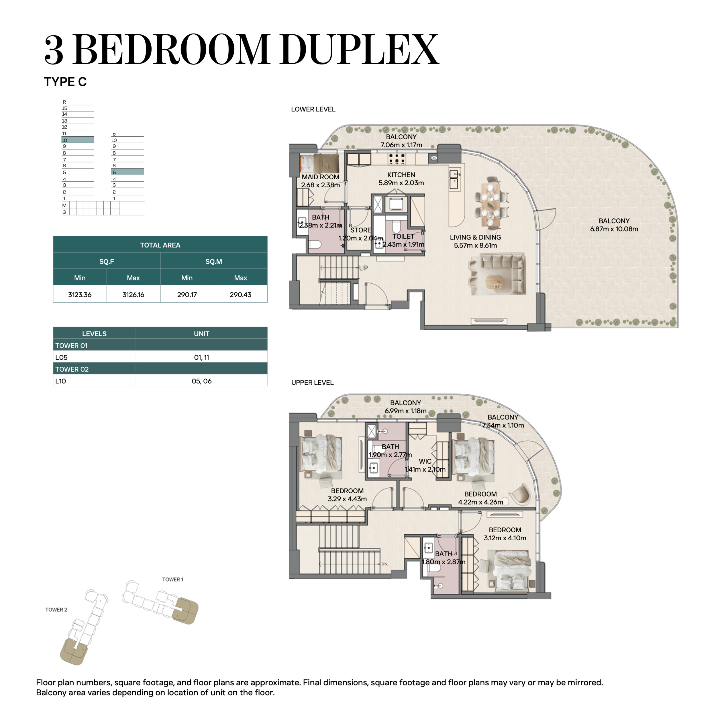 Все виды жилья выполнены с открытой планировкой: просторная гостиная-столовая связана с кухней, большие окна пропускают естественный свет, а верхние уровни (для дуплексов и пентхаусов) имеют приватные террасы и двойную высоту потолков.